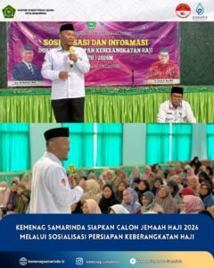 Samarinda (Humas) – Kantor Kementerian Agama Kota Samarinda menyelenggarakan kegiatan “Sosialisasi dan Informasi Dokumen Persiapan Keberangkatan Haji 1447 H / 2026 M” yang berlangsung dengan antusias, diikuti oleh sekitar 250 calon jemaah haji asal Kota Samarinda. Kegiatan ini menghadirkan narasumber…
